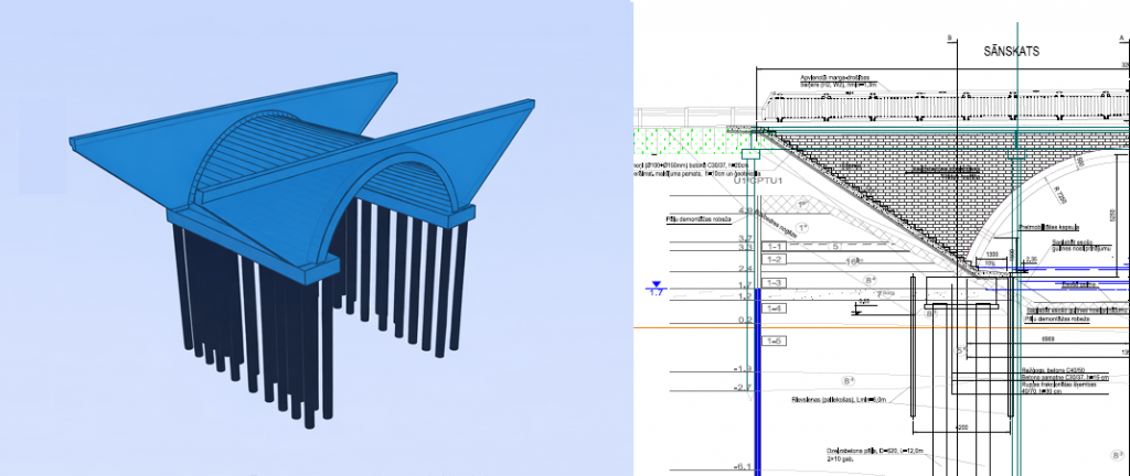 Lai būve būtu ne tikai funkcionāla, bet arī estētiski pievilcīga, betonējot atbalstsienas, paredzēts pielietot veidņu matricas, kas atbalstsienu virsmā izveidos akmens mūrim raksturīgu virsmas struktūru (attēlā shematiski velves dzelzsbetona konstrukcijas un mūra virsma ).