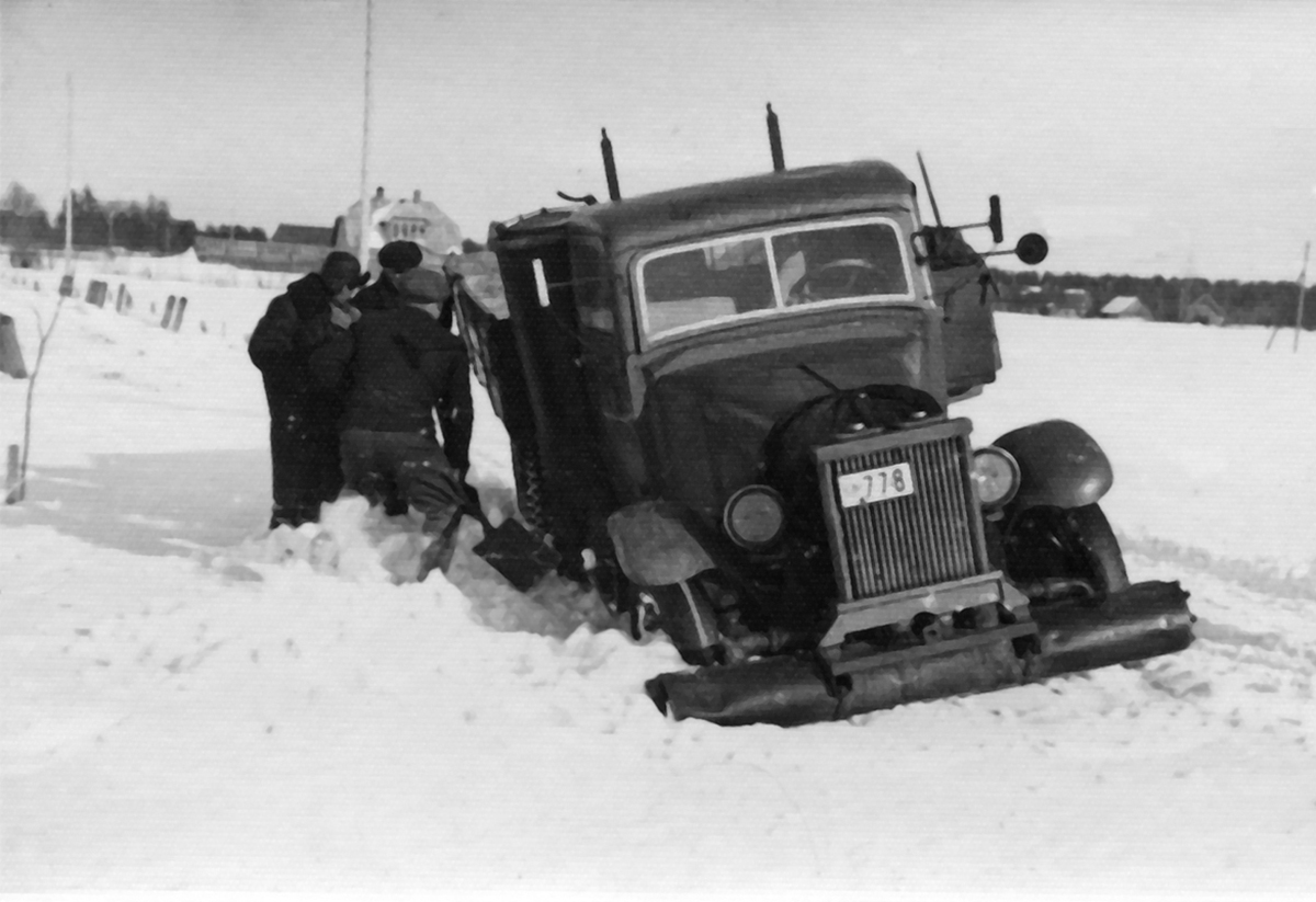 2. Kravas automašīna uz sniegota ceļa. 1930. gadi. Foto Latvijas ceļu muzeja krājumā no Jāņa Vēzīša arhīva.
