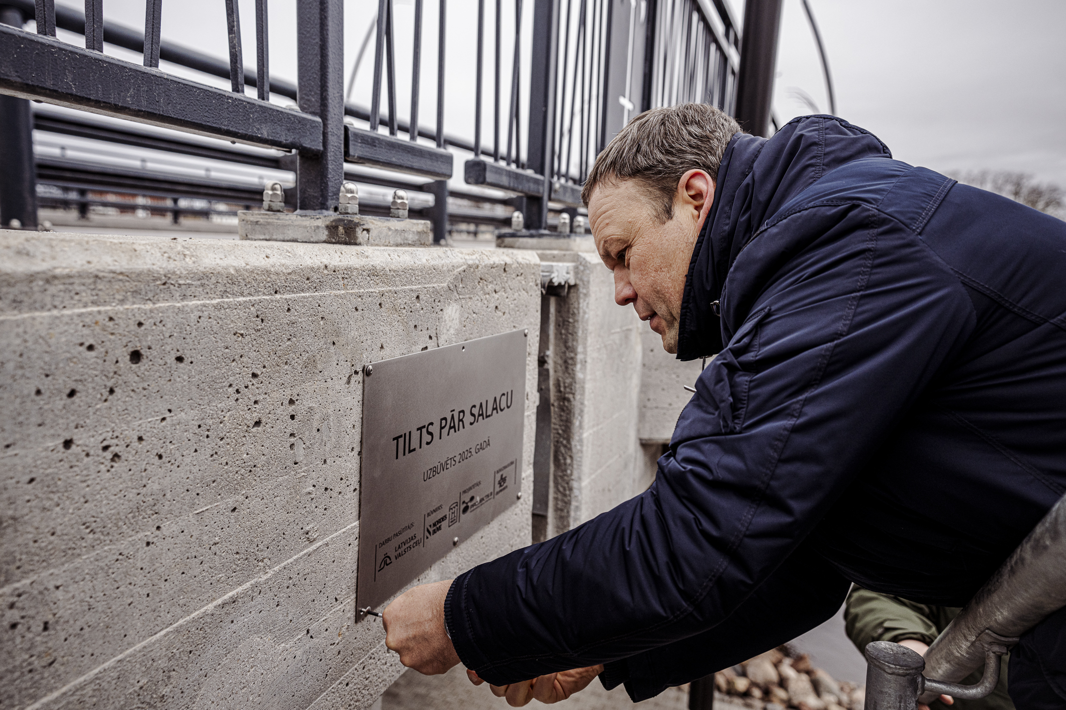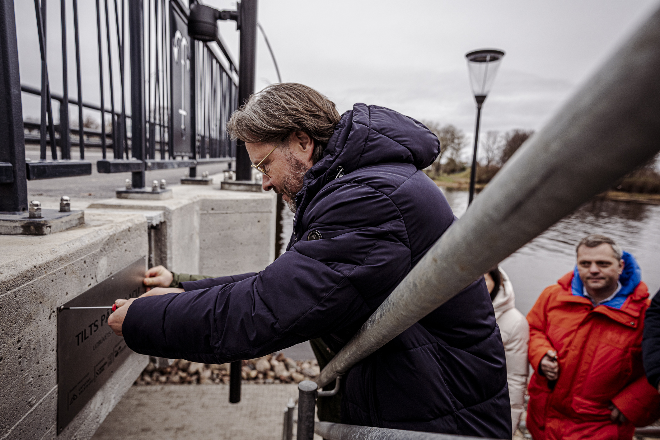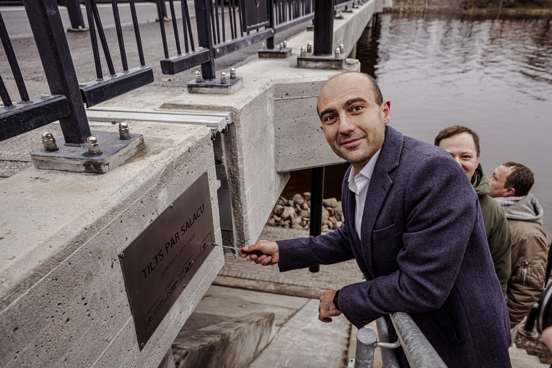 Atzīmējot būvdarbu pabeigšanu, pie tilta piestiprināta informatīva plāksne. To piestiprināja VSIA Latvijas Valsts ceļi (LVC) valdes loceklis Verners Akimovs, SIA Nordes Būve valdes loceklis Gegams Hanamirjans, SIA Tilts valdes loceklis Artjoms Gridņevs, Limbažu novada domes priekšsēdētāja Sigita Upmale, projektētājs Ģirts Šķupelis no SIA Projekts 3 un būvuzraugs Arnis Linde no AS Ceļuprojekts.