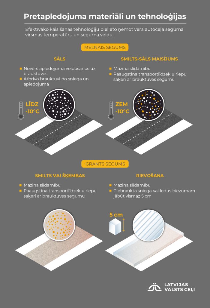 NB! Mitrās sāls un smilts-sāls maisījumu tehnoloģijas negarantē vasaras sezonai pielīdzināmus braukšanas apstākļus.